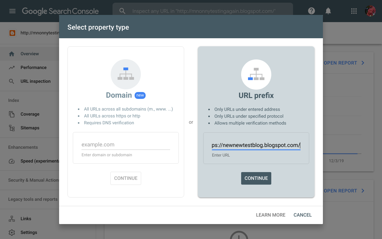 يجب إضافة مدونات Blogger الجديدة والتحقق منها تلقائيًا في حساب Search Console. ومع ذلك ، إذا لم تتم إضافة مدونتك تلقائيًا ، فيمكنك بسهولة التحقق من مدونة Blogger في Search Console.